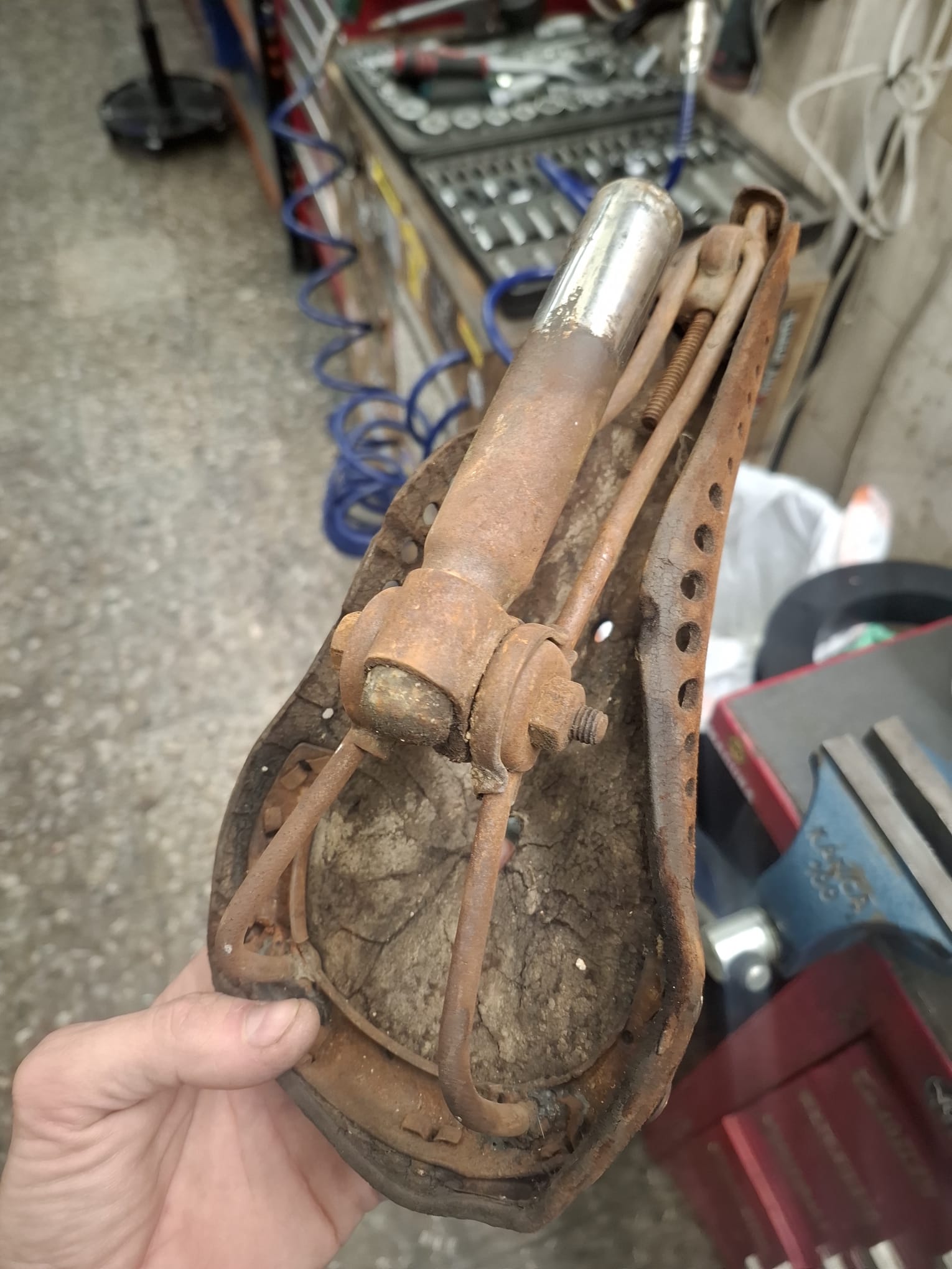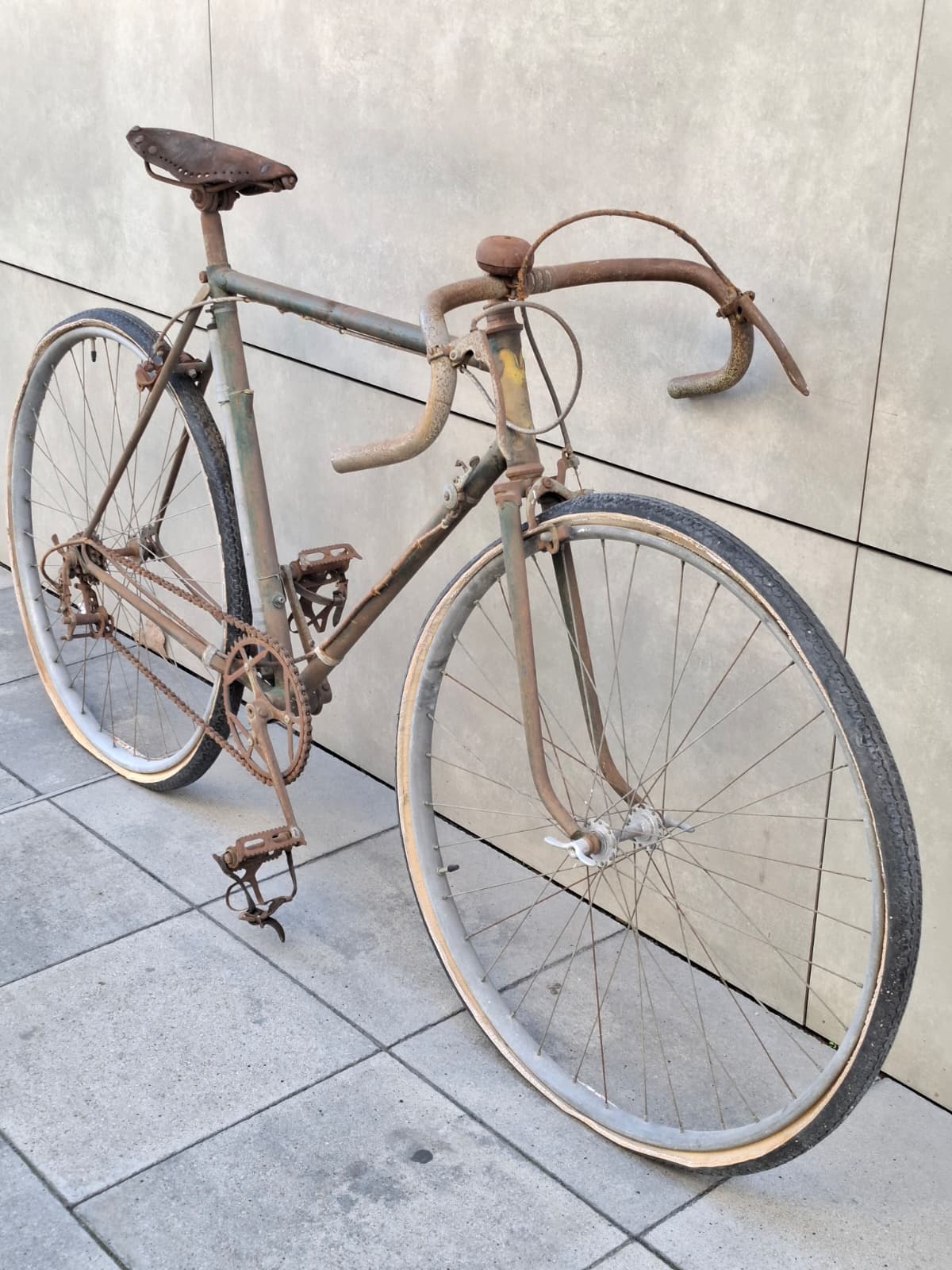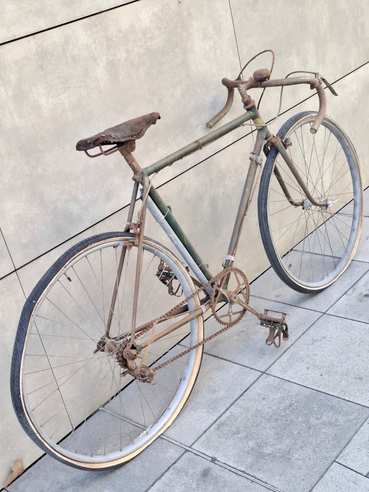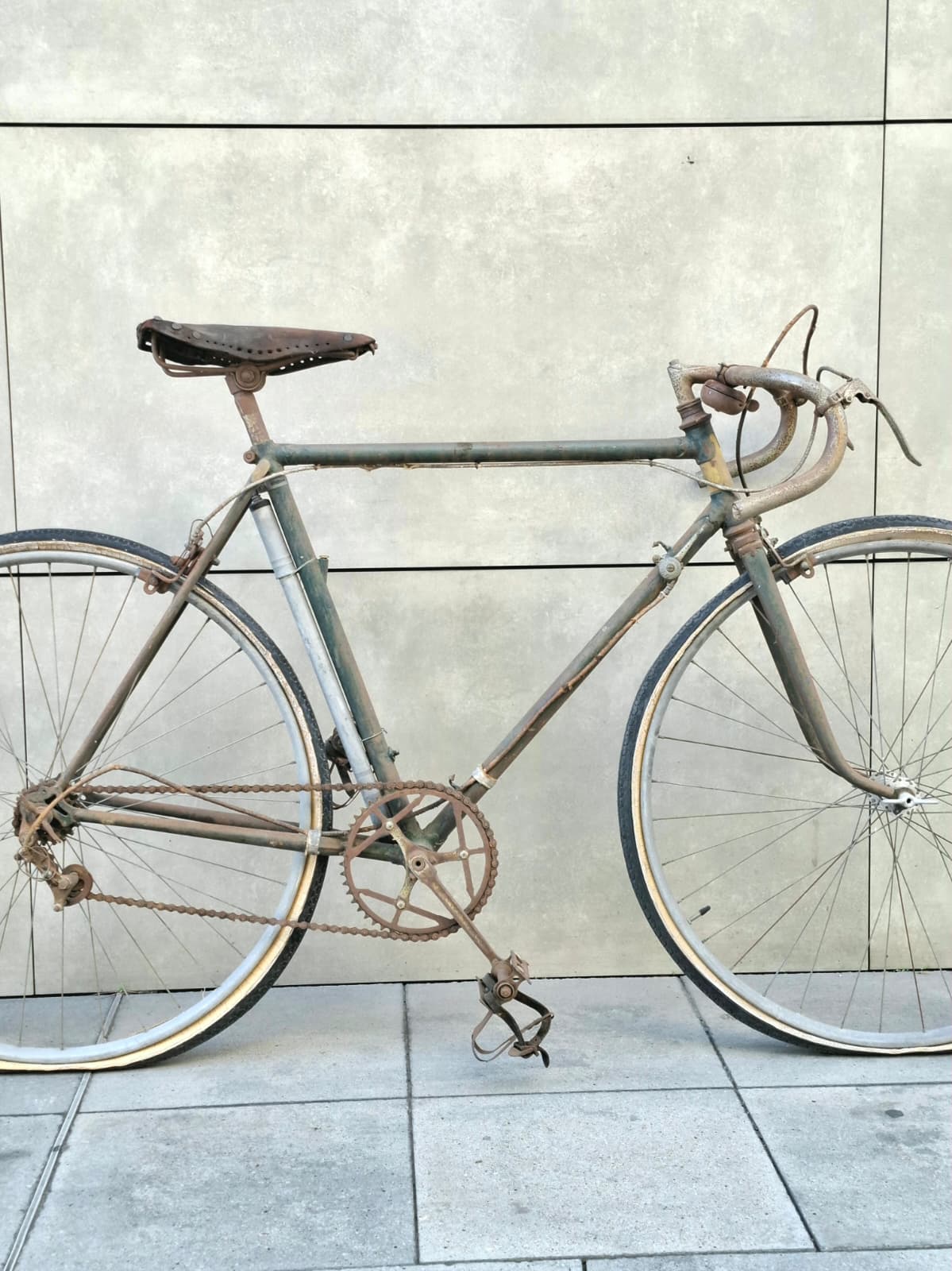 Y aquí es donde nuestra historia se cruza con la del campeón. Por pura casualidad entró en nuestro taller una bicicleta que parecía condenada al olvido: llegó sin una gota de pintura, devorada por el óxido y profundamente estropeada. La clienta nos contó que su padre la había comprado de segunda mano en Barcelona hacía 75 años.