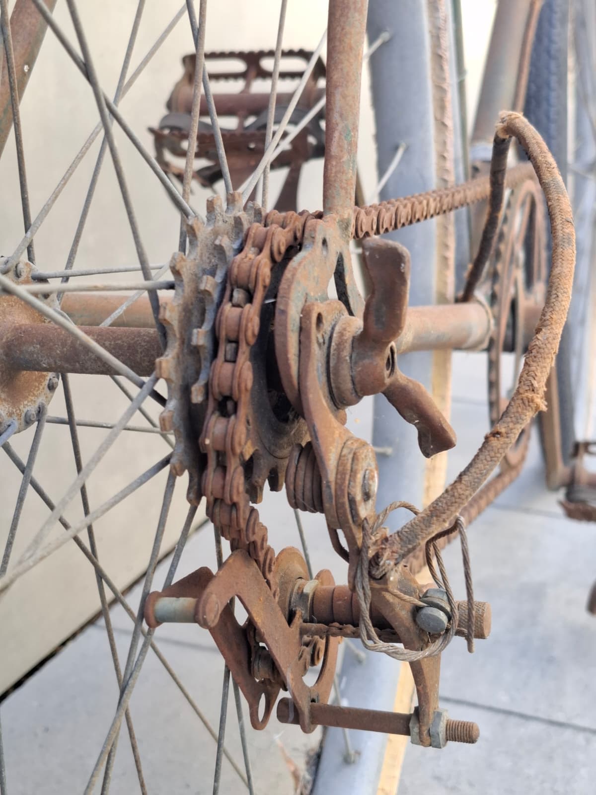 Aunque el fabricante del cuadro sigue siendo un misterio —podría ser una Alcyon, marca con la que Frantz compitió, o cualquier otra gran firma europea de la primera mitad del siglo XX—, lo que descubrimos al retirar la corrosión fue fascinante.