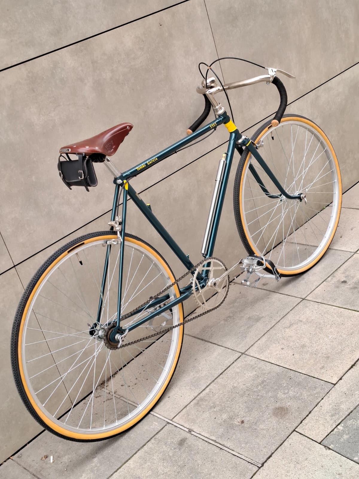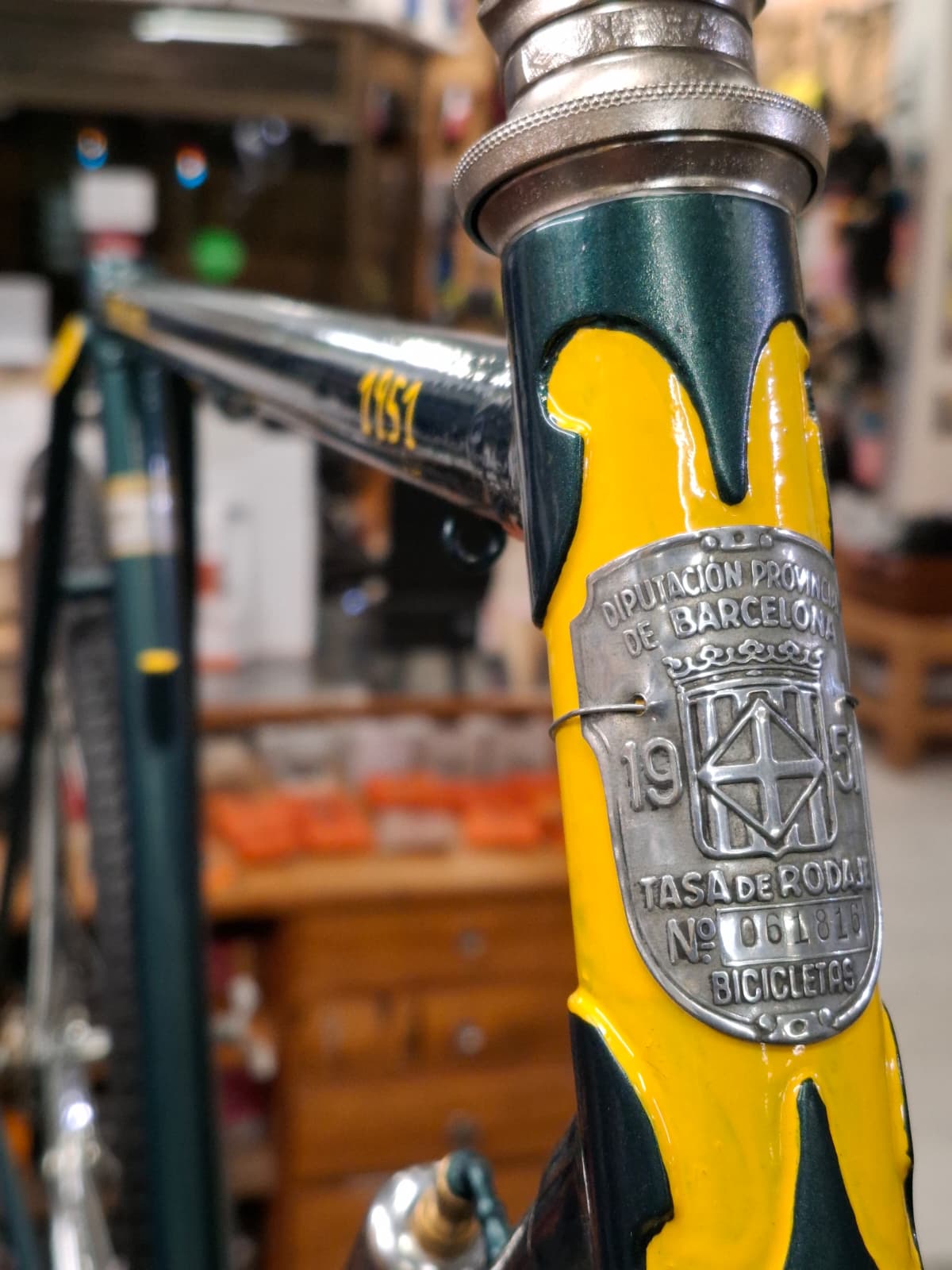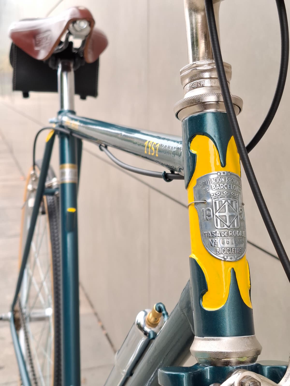 ¿Cómo llegó esta combinación técnica desde Luxemburgo hasta la Barcelona de posguerra? ¿Fue la montura de algún corredor profesional que trajo consigo la mejor tecnología de la época? Es un misterio que ahora viaja con ella.