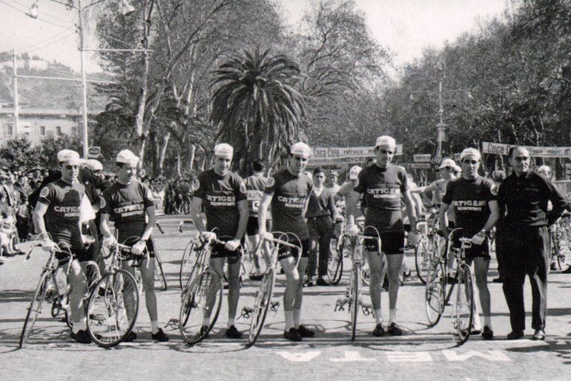 Hablamos de un ciclismo en blanco y negro, retransmitido a diario en la radio y en los periódicos. Hablamos de bicicletas de 6 y 8 velocidades, cuadros de acero robustos y llantas tambien de acero con cubiertas tubulares. Hablamos del pasado inspirados por lo vivido en el presente. Inspirados por un encuentro producido el día en que Adolfo entró por la puerta de nuestro taller: «Hola buenos días. He venido aquí porque un amigo me ha dicho que son amantes del ciclismo de antes y que saben apreciar las cosas. Resulta que tenía por casa unos cuantos botellines viejos y he pensado que les podrían gustar».