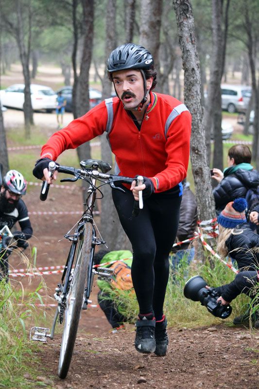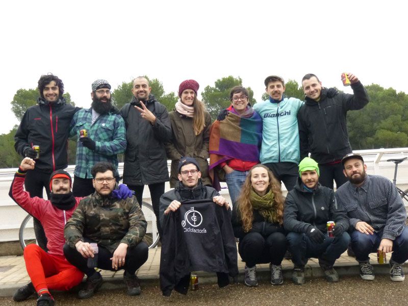 Cuando nos enteramos de que se iba a celebrar semejante carrera en los pinares alrededor del Parque de Atracciones no nos lo pensamos dos veces. Entre la grupeta de amigos, en la que se incluyen integrantes de La Cicleria, el Colectivo Pedalea, Zaragoza BikePolo y nosotros, Ciclofactoría, formamos un buen equipo de 10 amigos con unas ganas de pasarlo bien y un estado de forma físico, directamente desproporcionales. Nos encanta la bicicleta, sí. Practicamos cicloturismo, jugamos bike polo, soñamos con bicis, nos dejamos el sueldo en maillots, cuadros y caprichos, pero, seamos sinceros, físicamente estamos para el arrastre. Las rutas con alforjas o las salidas de domingo que suelen acabar en vermú torero no son lo que el personal trainer de cardio-fit recomienda para carreras que exijan algo más que las gymkhanas de las fiestas del pueblo. Pero por ganas e ilusión no iba a ser, así que nos pusimos nuestras mejores galas, adaptamos nuestras monturas a lo que la normativa exige y nos presentamos toda la grupeta puntuales a la cita.