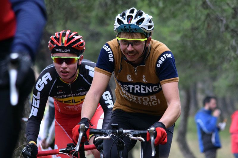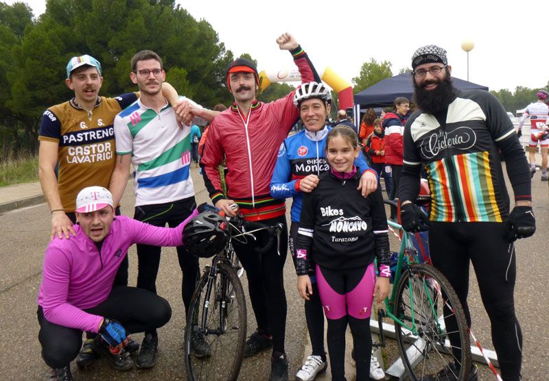 Amantes de lo clásico y auténtico que somos, no podíamos ir de otra forma que con nuestras bicicletas de acero y nuestros maillots de lana apolillados de los 60’s o de colores fosforitos de los 80’s. Ya que no íbamos a disputarle el podio a ninguno de los machacas de los equipos Trekk, Scott y compañía, al menos recordarles que una vez las bicicletas pesaban «algo más» que los 7 kg de hoy en día y que, a falta de piñoneras de 11 coronas, con los riñones también se suben cuestas. Quizá se deba a una mezcla entre envidia sana, por no poder permitirnos estar a la última en equipamiento técnico, y el convencimiento de que, a menos que te vaya la vida (o sueldo) en ello, tampoco hace falta tanto para practicar un deporte tan básico.