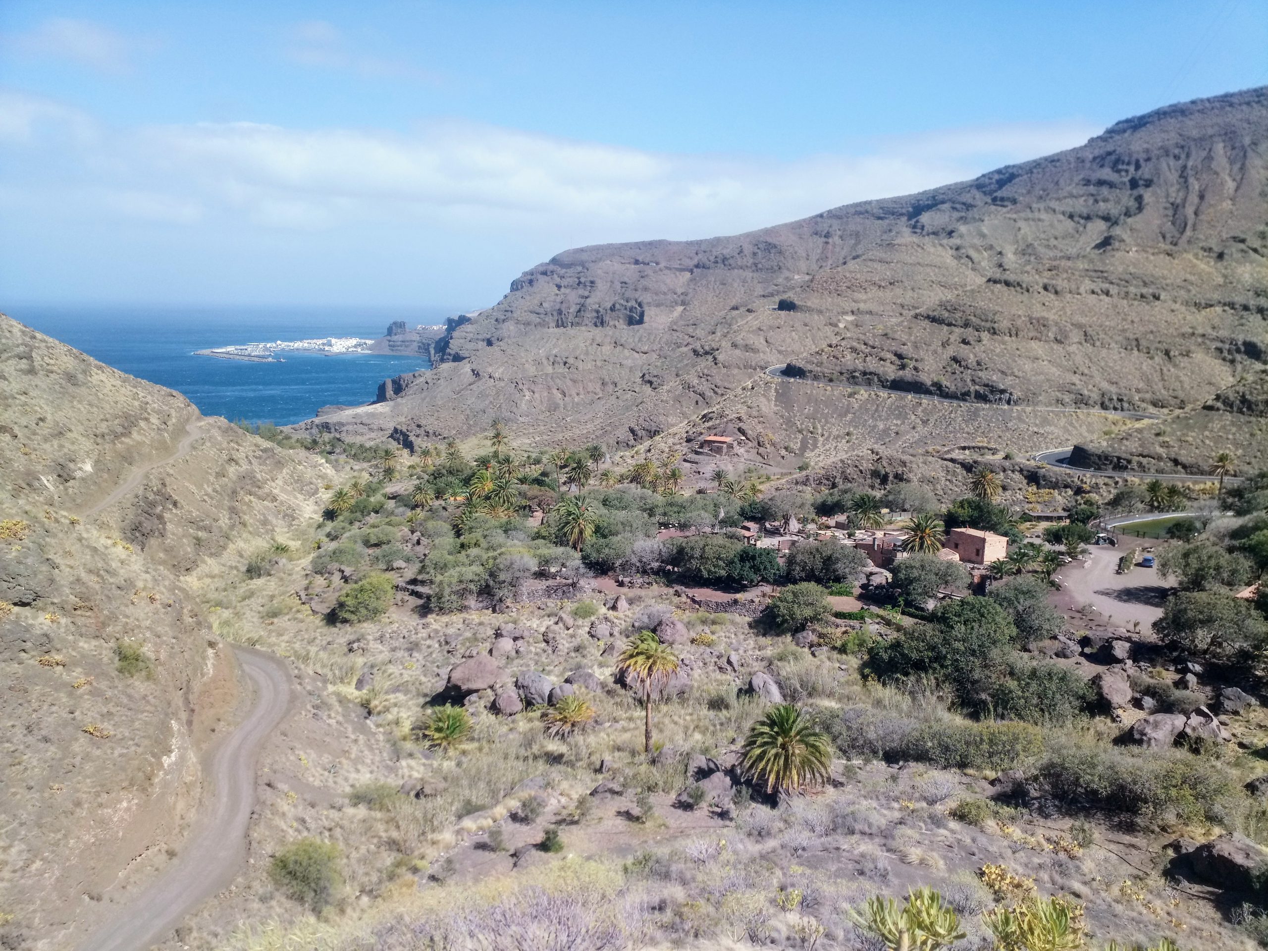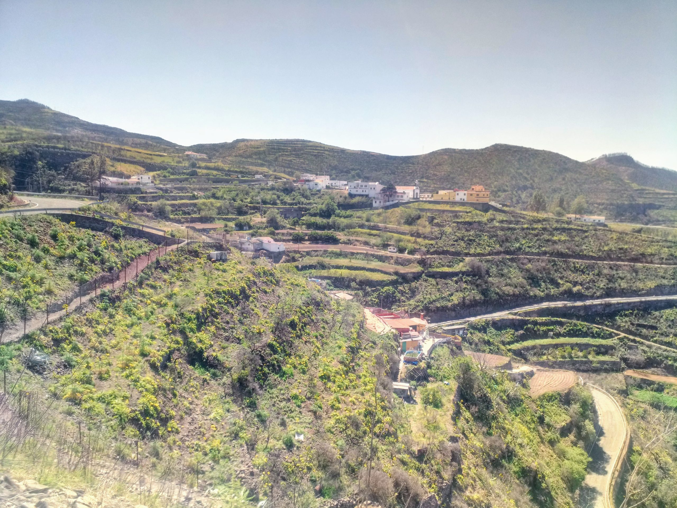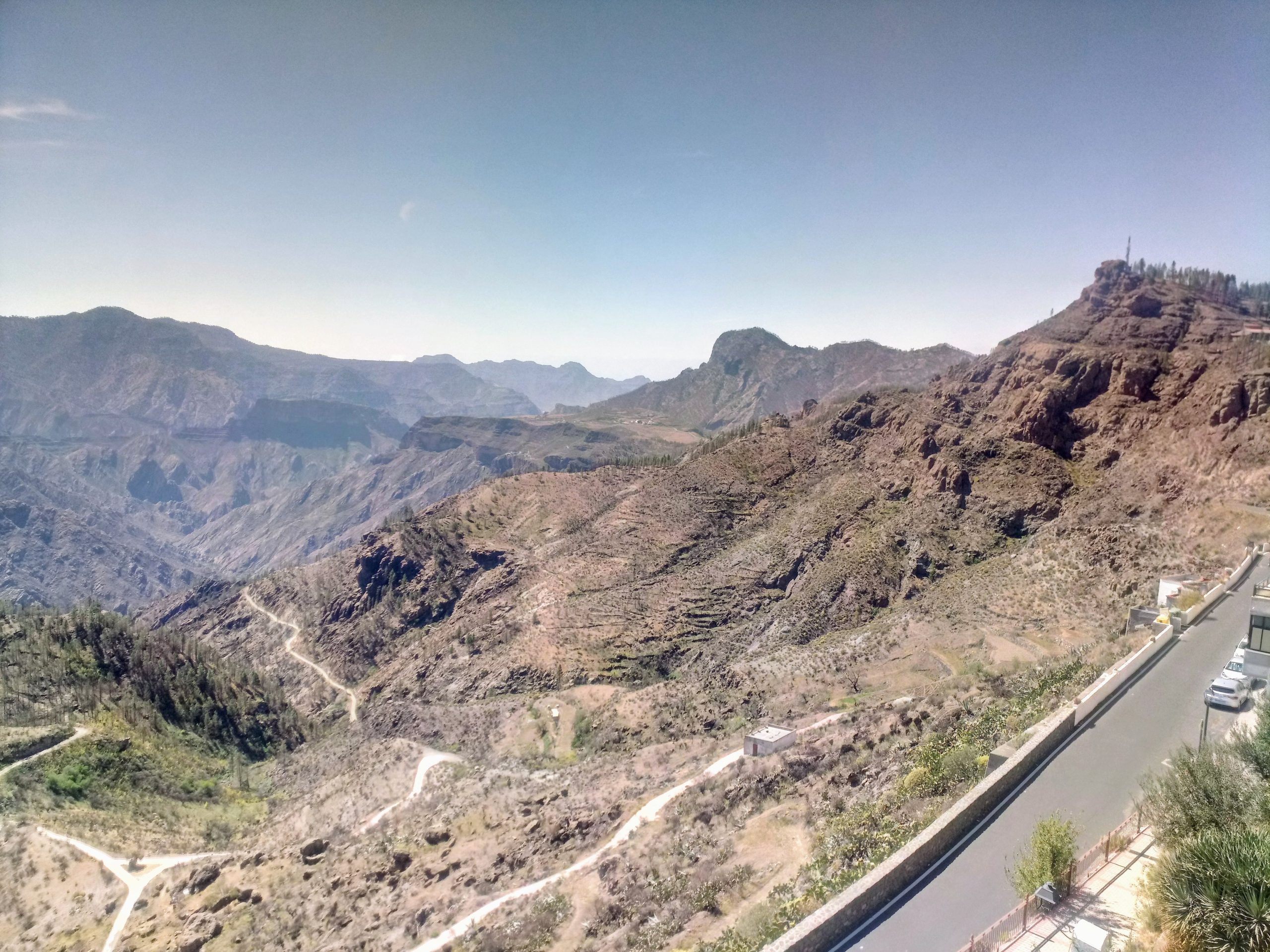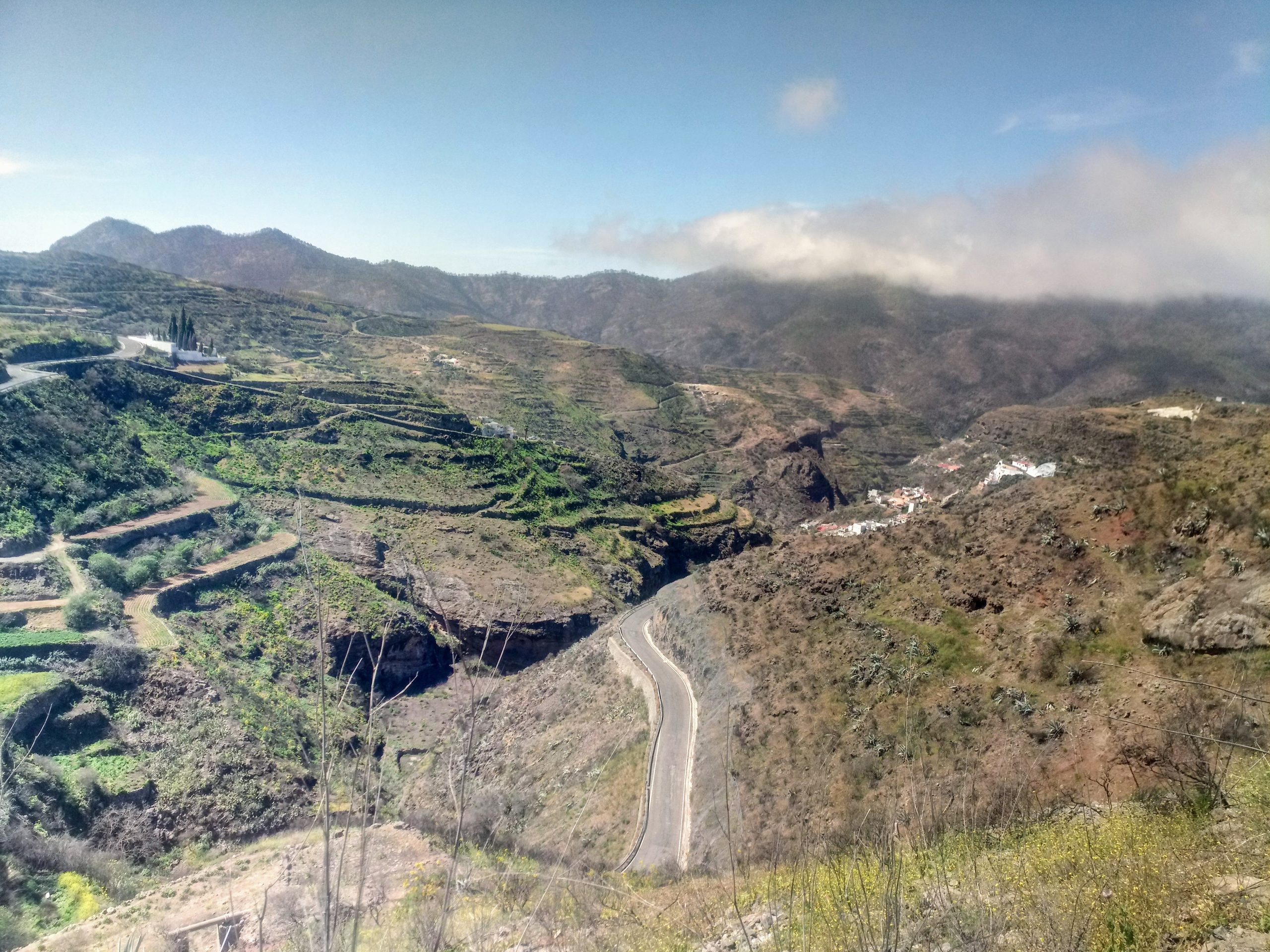 Al llegar a Artenara desde el norte (como hicimos el primer día) te encuentras de repente con el «death valley», un lugar desértico como nunca había visto (y eso que tenemos Los Monegros en casa). El valle remonta serpenteante desde La Aldea de San Nicolas al nivel del mar, hasta el propio Pico de las Nieves. Una carretera minuscula, de muy poco tráfico, conocida como la carretera de las presas por las numerosas presas super antiguas que vas encontrando conforme remontas el valle. Para salvar los desniveles de los que se aprovechan las presas para guardar el agua, la carretera dibuja unas divertidas zetas al estilo de Alpe d’Huez en miniatura, pero seguidas unas por otras, lo que la convierte en una ruta muy explosiva cada pocos kilómetros.