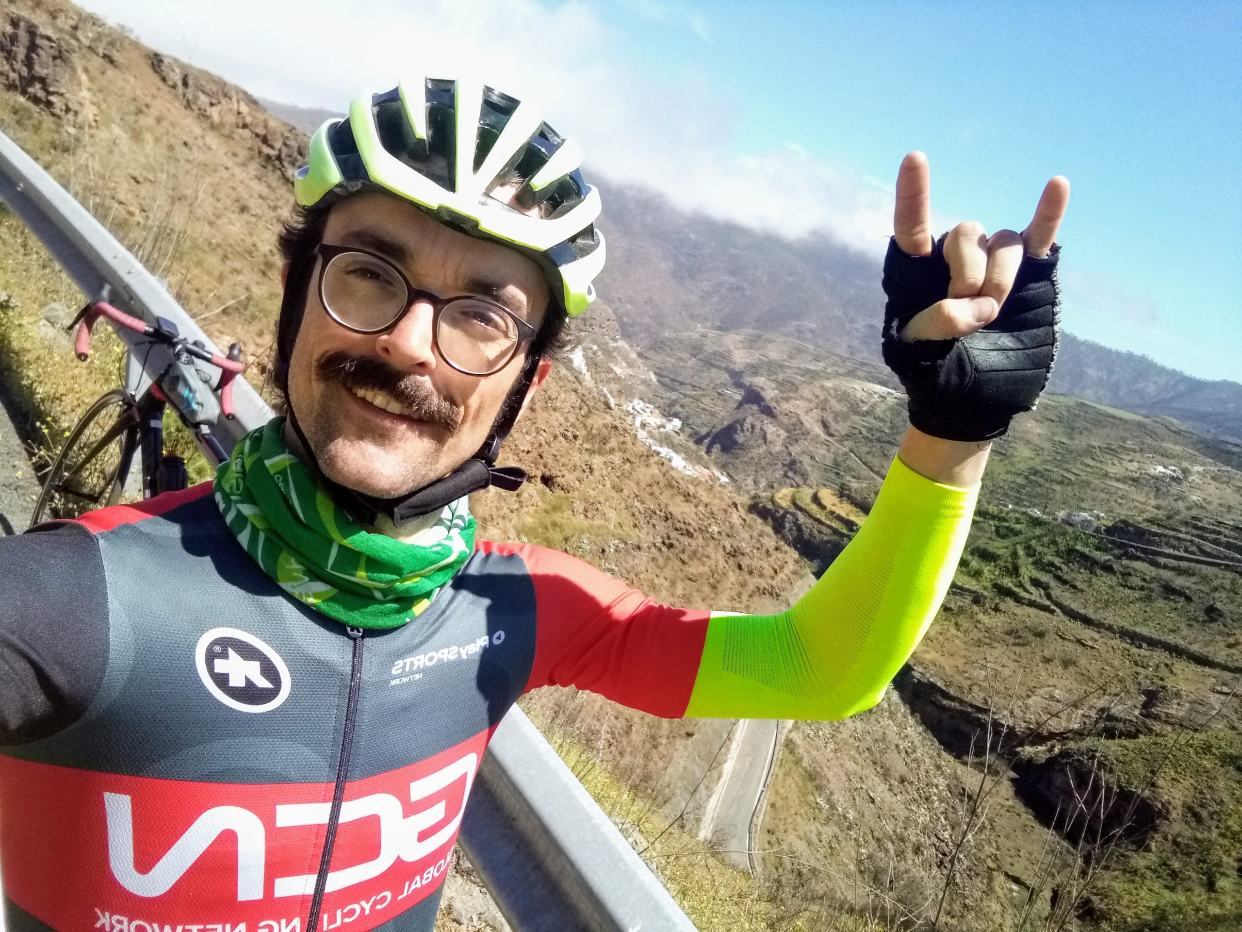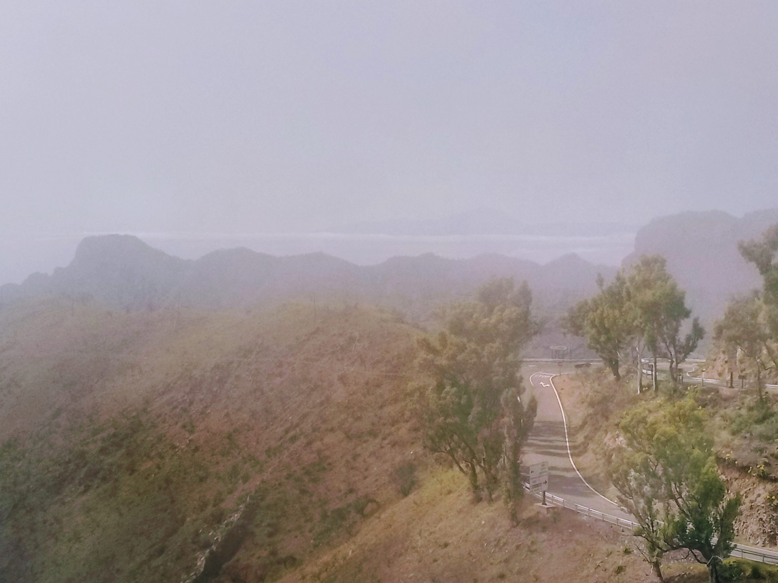 El primer día salió nublado con alta probabilidad de lluvia, y es que la isla es un lugar con una meteorología muy cambiante, donde te puedes encontrar dos horas de nubes y ligeras lluvias, seguidas de densas nieblas conforme ganas altura, y más tarde otras dos horas de sol radiante sin viento, para girar 90 grados al llegar a otro valle y enfilar el Pico de las Nieves desde el sur y encontrarte vientos huracanados de 80km/h de cara, que te dinamitan la moral cuando empiezas los kilómetros al 12% de media de la Cruz de la Tejada. Todo en la misma mañana, como así ocurrió!