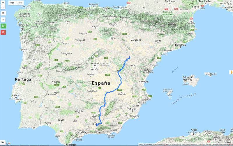Me pongo como destino Nívar (Granada) donde he quedado con unos amigos que no veo hace mucho tiempo. Como punto de incio decido pillar el tren hasta Monreal del Campo (Teruel) y empezar desde allí. En total me salen en el mapa unos 630 km que me planteo hacer en 3 etapas. Nada que ver con los 400 km al día que llegan a hacer los que ganan las carreras de ultra distancia, pero sí que es más de lo que nunca he hecho y me sirve para ponerme a prueba.