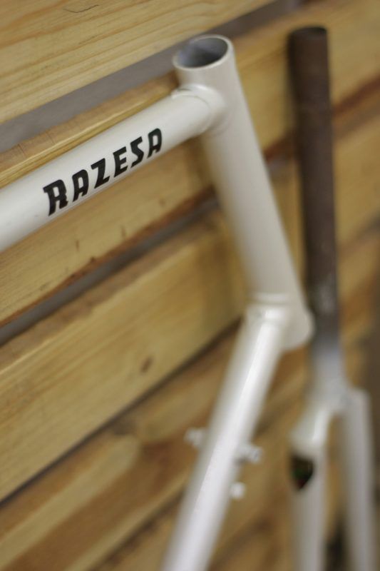 Para un montaje así a la carta, lo más importante iban a ser dos cosas: un cuadro de su tamaño, y unas ruedas robustas que aguanten todo su peso bajando y subiendo bordillos y en las frenadas en seco. Por suerte, hace tiempo que trajimos de Galicia dos cuadros Razesa a estrenar de una talla nada convencional en estas latitudes para cuadros de acero clásicos: una talla 64. Estos cuadros, los mandaban construir a Razesa los de Bicicletas Integral, en Monforte de Lemós (Galicia). Por la década de los 70 y 80, poca gente apostaba por cuadros con caracterísitcas de cicloturismo y esta gente de Bicicletas Integral eran unos de ellos. Cuadros preparados para montar neumáticos anchos, de 700 x 35c y más, ojales para parrillas y guardabarros, e incluso soporte para dinamos. Por sus caracterísitcas y tamaño, elegimos este cuadro para montarle a Álex su nueva bicicleta urbana.