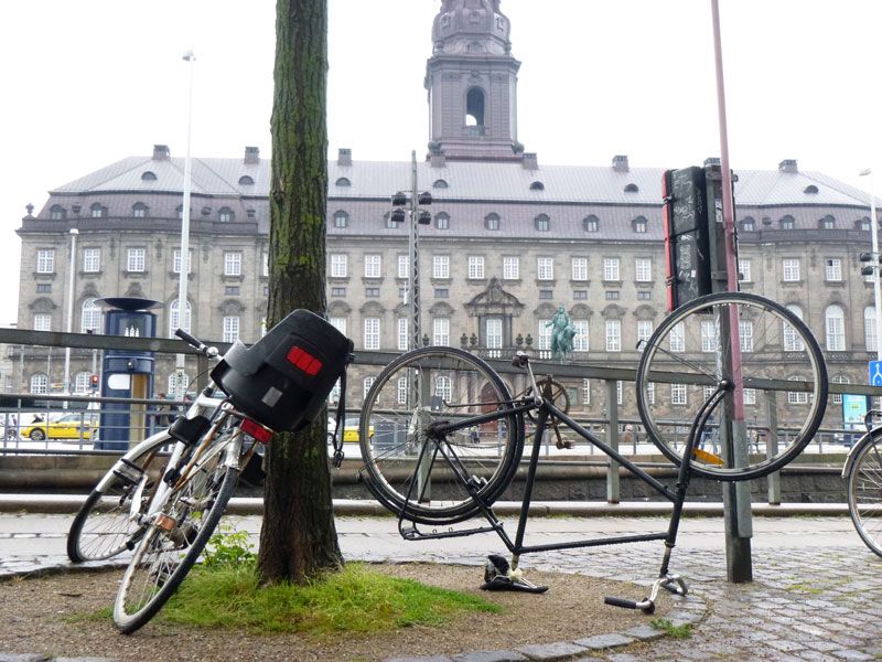 - Copenhagen Cyklebors: La empresa más antigua de alquiler de bicicletas de toda Dinamarca. Un pequeño local centrico, junto al Parque del Rey. Dispone de una gran flota de bicicletas aparcadas todas ellas en la misma puerta de la calle. Por 90 coronas (unos 12€) te alquilas una bici todo el día, con caso y candado incluído. Tambien venden todo tipo de componentes y accesorios y reparan lo que les lleves. Y si te pones a rebuscar en alguna de las cestas de «zarrios» que tienen quizá puedas encontrar gorrillas antiguas o cintas del Banesto o del Rabobank, como nos pasó a nosotros!