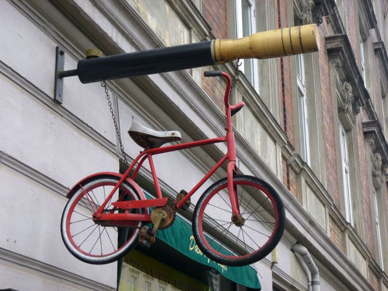 La bicicleta no solo es el elemento de transporte indispensable de los daneses sino todo un simbolo que es utilizado a diario en muchos ámbitos y sectores. La decoración de una de las callejuelas del legendario parque de atracciones Tivoli (con su montaña rusa más antigua de Europa), los pocos grafritis que se pueden ver por la ciudad, los letreros y carteles de comercios relacionados o no con la bicicleta, en escaparates de tiendas de ropa y de menaje del hogar, como piezas de museo, como reclamo y símbolo de la ciudad en jugeterías, o como imagen publicitaria de grandes firmas.