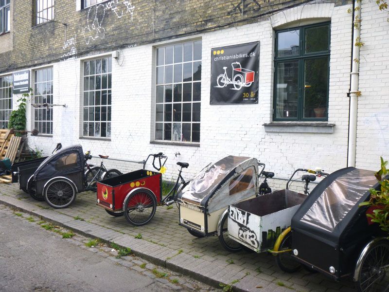 - Christiania Bikes: Situado en el barrio de Christianshavn, el poblado libre de Christiania lleva 45 años autogestionandose parcialmente al margen del estado danes. Y las bicicletas han sido una de las herramientas de revolución social para este proyecto que a día de hoy sigue firme ante el monstruo que lo rodea. En el corazón de Christiania encontramos la nave de los triciclos de carga Christiania-bikes. Si visitar el Poblado libre ya es una buena razón para visitar Copenhagen, entrar en la tienda de bicicletas y en la nave de ensablaje de las bicis es otra más. La producción de estas bici-cargo se desplazó a un pueblo en el campo y ahora llegan a la nave de Christiania los cuadros construídos y pendientes de montar para tenerminar las bicis y sacarlas al mercado. Incluso si preguntas te dejan probar una y ver si es lo que andas buscando.