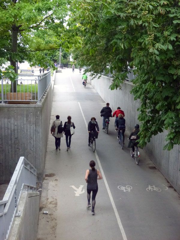 La cultura de la bicicleta esta presente en cada segundo vivido en Copenhagen. No parece ser una herramienta de revolución social ni estar intimamente ligada a las ideologías de izquierdas o al movimiento ecologista. Es algo que desde hace más de 50 años forma parte de la vida cotidiana de todas y todos los miembros de la sociedad danesa, independientemente de la edad, el estado de forma, el sexo o la clase social. Sentarte a las 5 de la tarde de un martes en un banco en mitad de un puente que une el centro de la ciudad con el barrio de Osterbro y fijarte en los estilos de ciclistas que circulan sin parar por delante de tus ojos es cuanto menos divertido. Un desfile de biciclistas con monturas de paseo en su mayoria, pero también de carreras, de montaña (muy pocas) y tricilos de carga. Todos con la postura erguida, determinación en su pedaleo y una sonrisa de oreja a oreja.