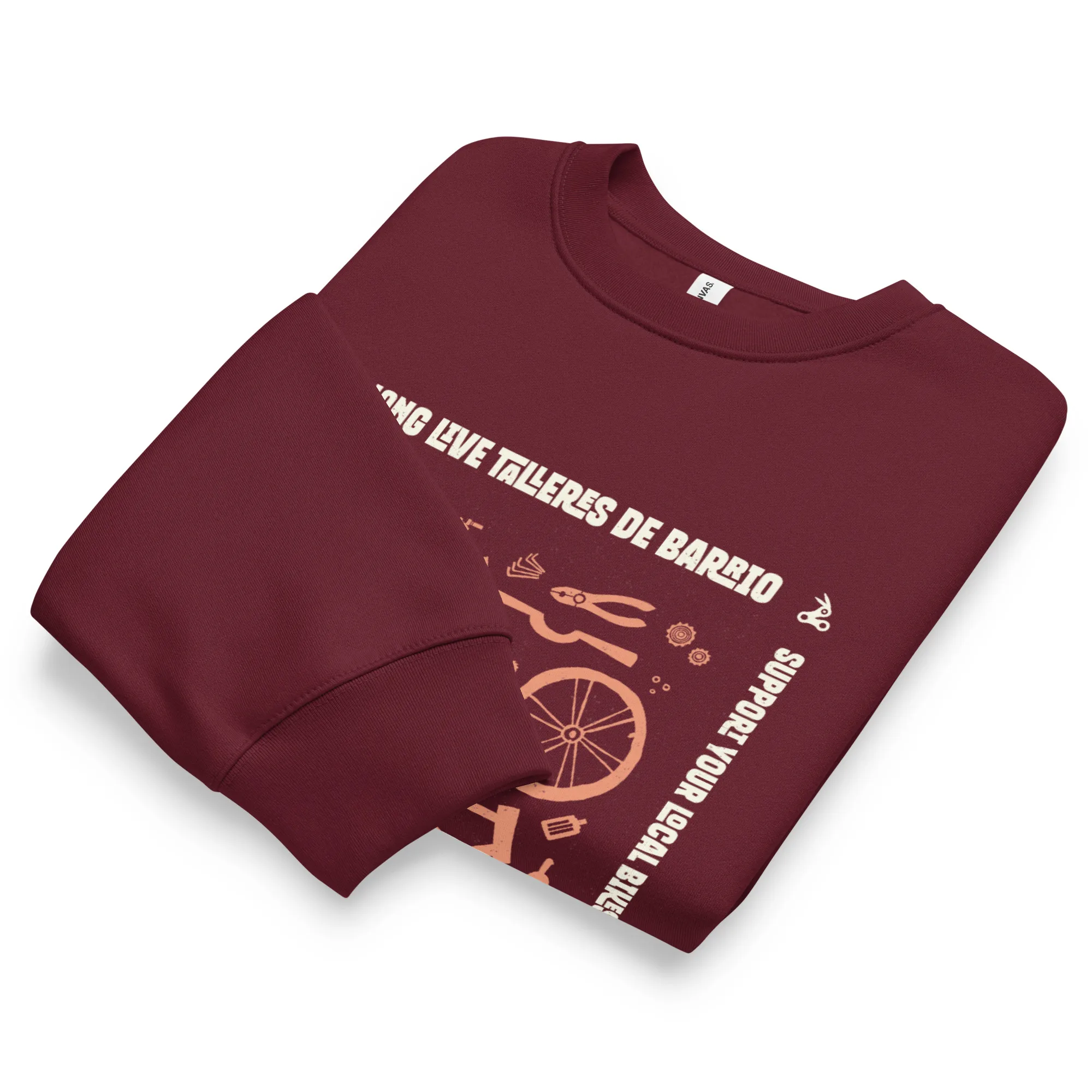 El diseño está serigrafiado con tintas al agua (eco), nada de impresiones rápidas. Un guiño a esos talleres de barrio donde siempre huele a cera y a grasa, donde se arreglan bicis… y se cuentan batallas. “Long life talleres de barrio”, porque la cultura ciclista se construye en el banco de trabajo.