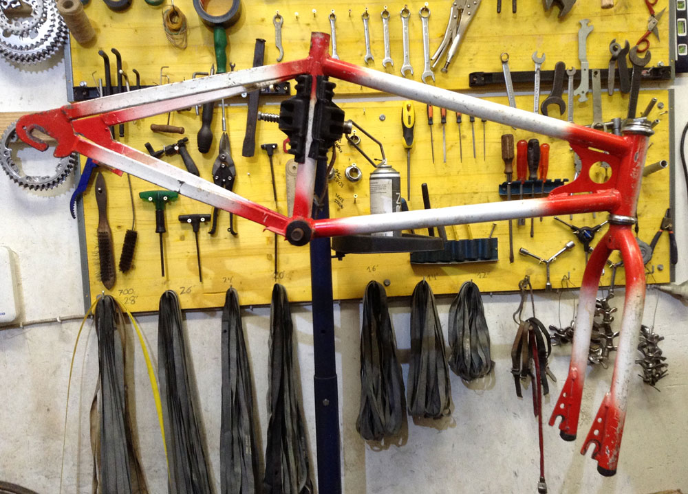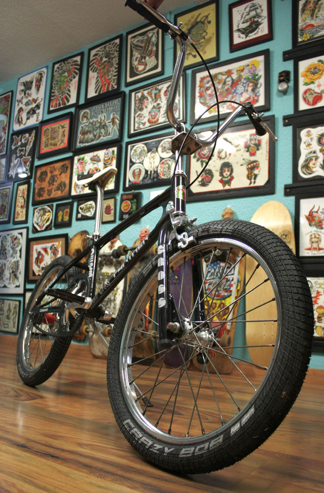 Hechas las presentaciones…, el cliente quería que dejasemos la bici lo más fardona posible y nosotros mientras tanto pensando que esta BMX no había sido diseñada para alguien de 1’85m de estatura. Pero nos las igeniaríamos. Siempre lo hacemos.