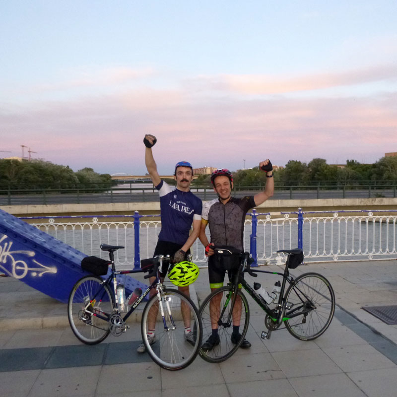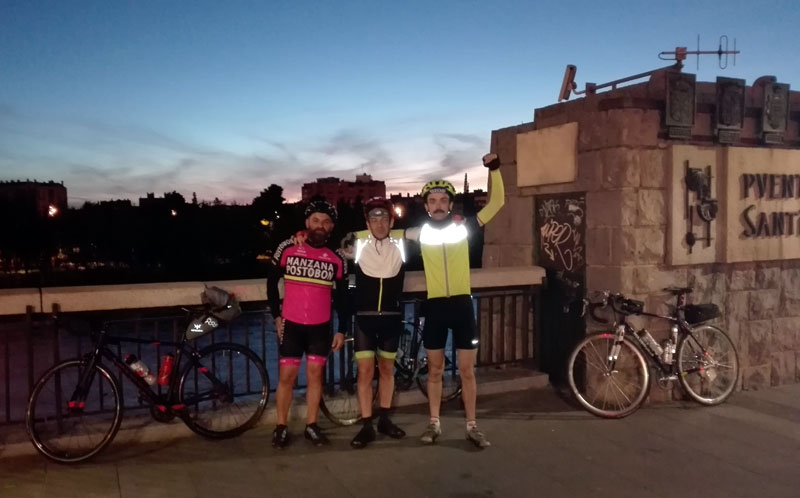 Son las 5h45 del sabado 16 de junio. Hemos quedado tres colegas (El Cogollos, Luis Mangrané y un servidor) en el Puente de Santiago para irnos de excursión con el Club Ciclista Aragonés. Han organizado «La Clásica», un brevet de casi 300km saliendo desde Zaragoza, subiendo a comer a Jaca y volviendo a Zaragoza, del tirón!