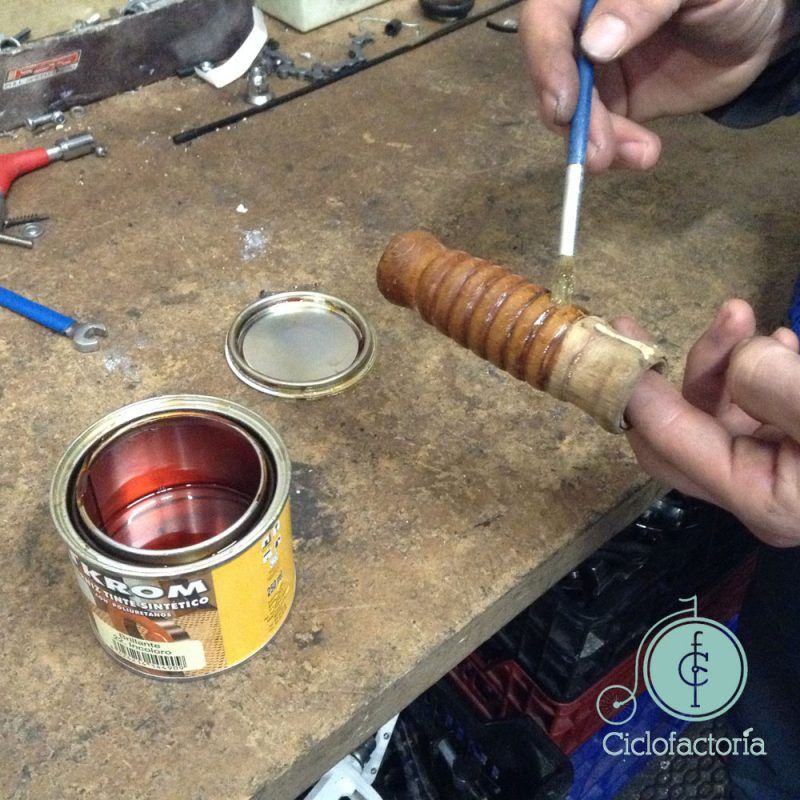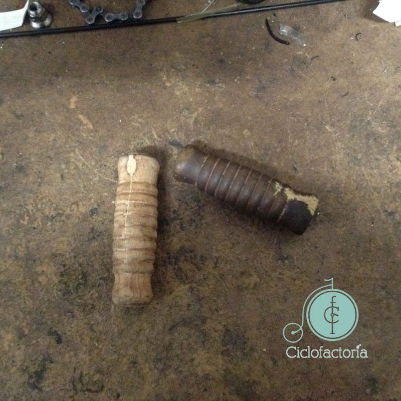 Especialmente contentos nos quedamos con la restauración de los puños de madera, sin duda uno de los elementos más distinguidos de esta bici. (Ver entrada «Restauración puños de madera«)