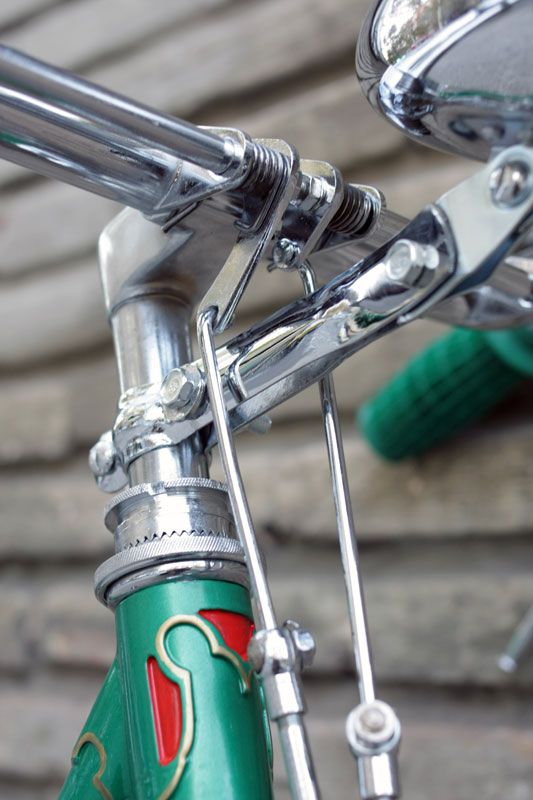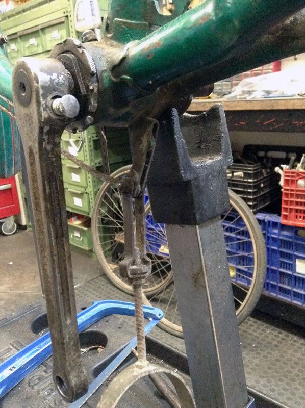 La parte más importante de un freno de varillas es sin duda los muelles. Si estos están dados de sí o muy oxidados y han perdido sus propiedades, no será nunca fácil conseguir una buena frenada. Para ello, y como son tan difíciles de conseguir hoy en día, nosotros mandamos reproducir los diferentes modelos de las diferentes marcas que usaban el sistema de varillas que conocemos, para poder hacer frente a cualquier restauración de este tipo. A esta bicicleta hubo que ponerle unos nuevos y ahora frena casi como si llevara hidráulicos!