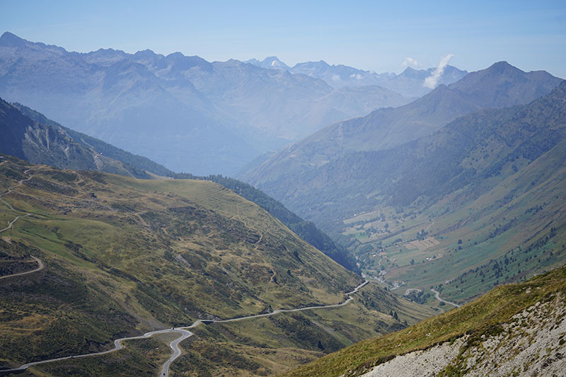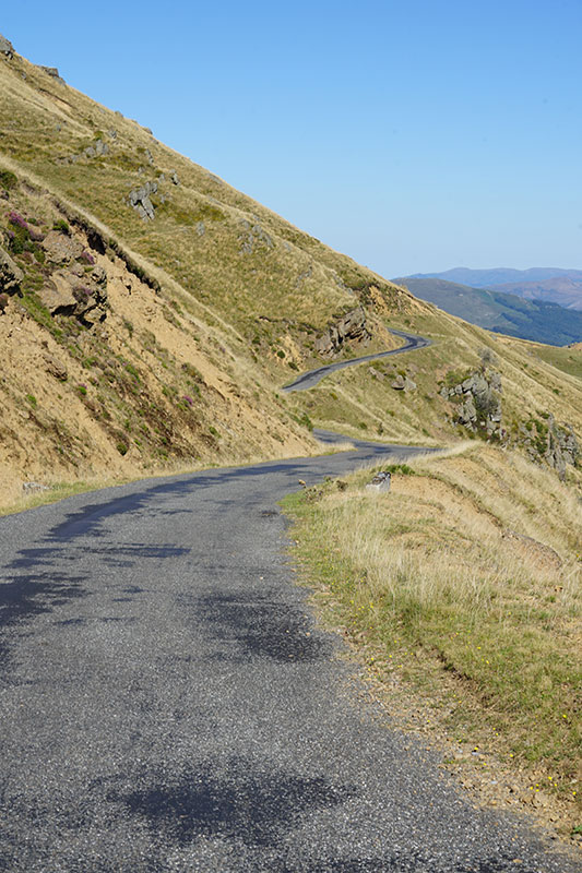 Seguimos ruta, y el sol empieza a calentar. Col de Garaibel, Pailheres, Pradel… uno tras otro se suceden y cada vez se hacen más duros. Pero lo peor de todo es que es domingo y no hay ni una sola población lo suficientemente grande como para tener un super o gasolinera que estén abiertos para comer algo. De bares ya ni hablamos. En el kilómetro 210 encontramos un camping con restaurante y podemos, por fin, echar algo sólido y caliente a la boca.