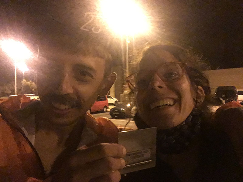 Me acerco a Jaizkibel, el último puerto. Me adelantan 4 corredores que buscan un último pique antes de la meta a modo de diversión y que dignifique un poco el espíritu de competición que se le presupone al ultracycling. Lo siento compañeros, no puedo medirme en un último sprint con vosotros. Tengo las fuerzas justas para llegar, no sé donde poner ya el culo en el sillín y a la rodilla derecha no le puedo pedir más. Me acerco a la cima y ahí están Fani y Candela que me animan y dan la bienvenida. ¡Por fin!