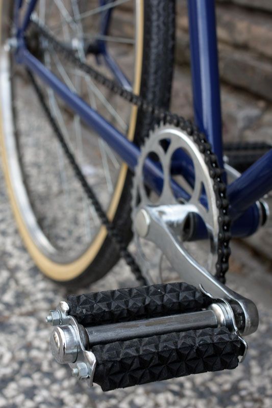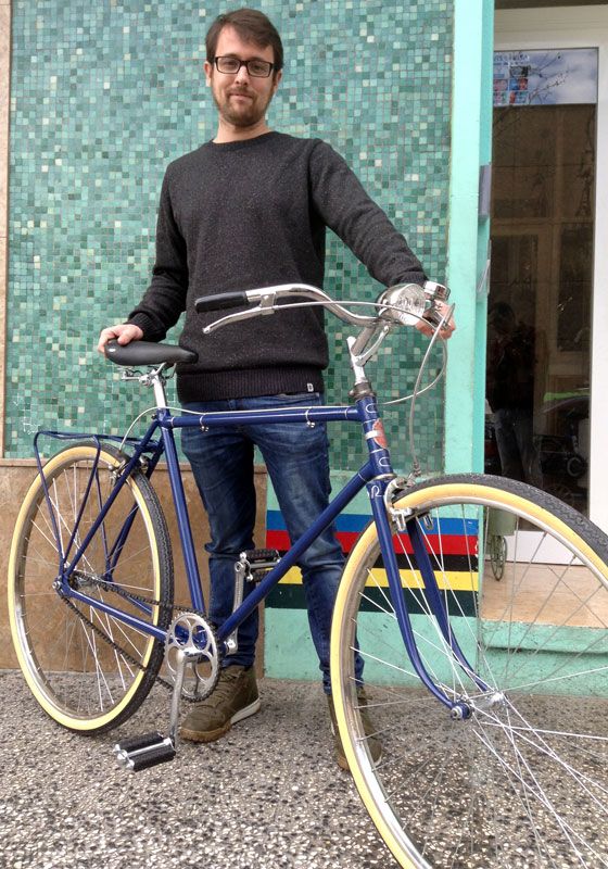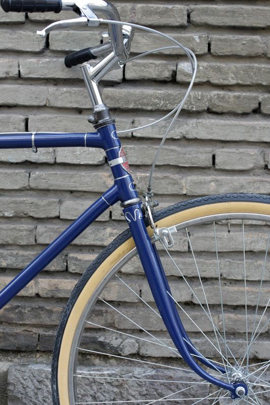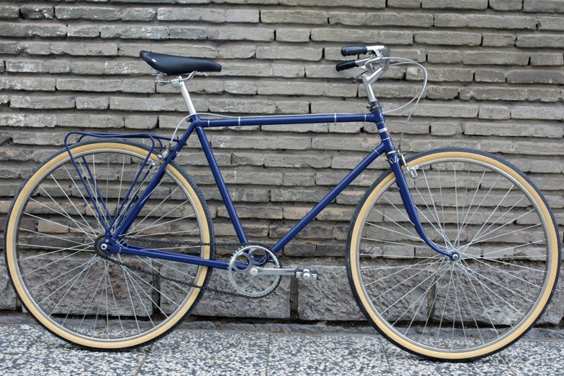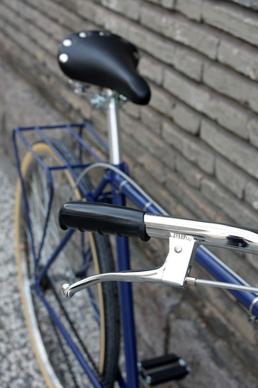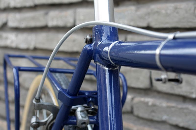 Solución: lavado de cara pintándola de nuevo con un color azul marino intenso, sustitución del manillar de carretera por uno con una postura más erguida y añadir todos los componentes necesarios para que funcione como el primer día. Por suerte, aún es posible conseguir medidas de ruedas antiguas como las de 28″ x 1 1/2 (700B), así como bielas, pedales y demás componentes clásicos.