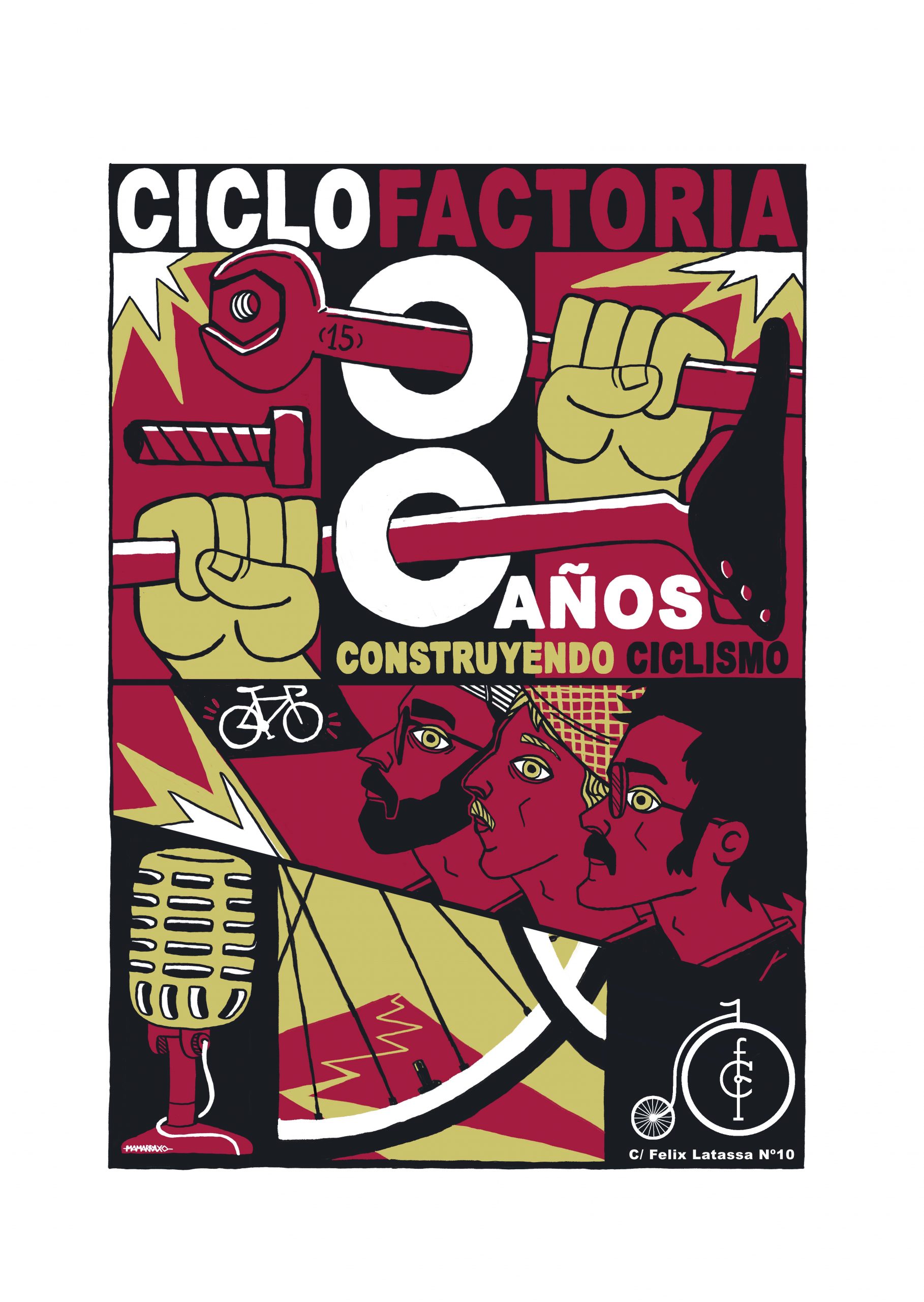 Hemos sacado unas camisetas bien guapas conmemorativas con el pedazo de diseño de nuestro amigo Mikel Iraola (@alforjasybotas), que servirán para sufragar los gastos del fiestón! Puedes hacerte con una en el siguiente enlace: Camiseta 8º Aniversario Ciclofactoria