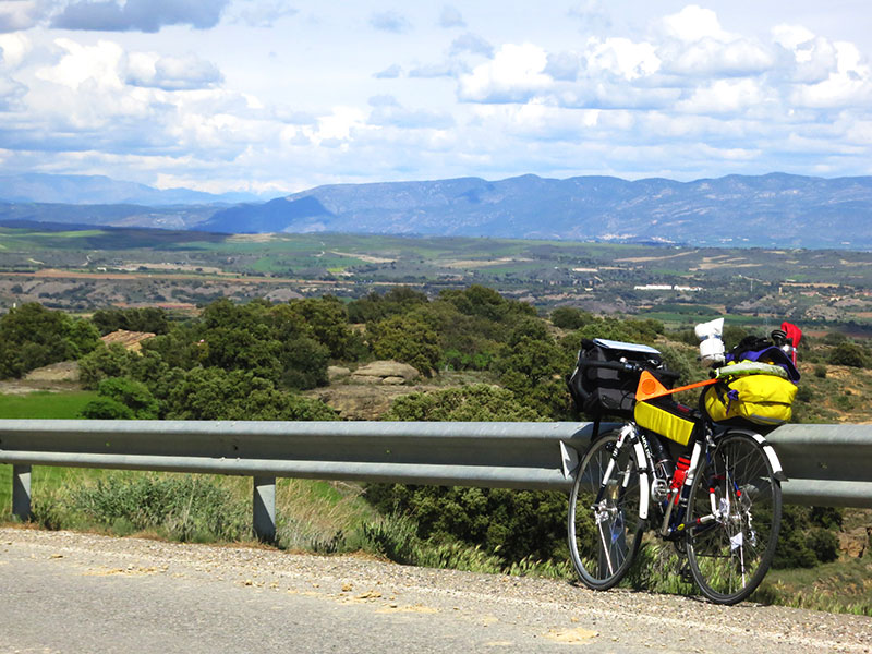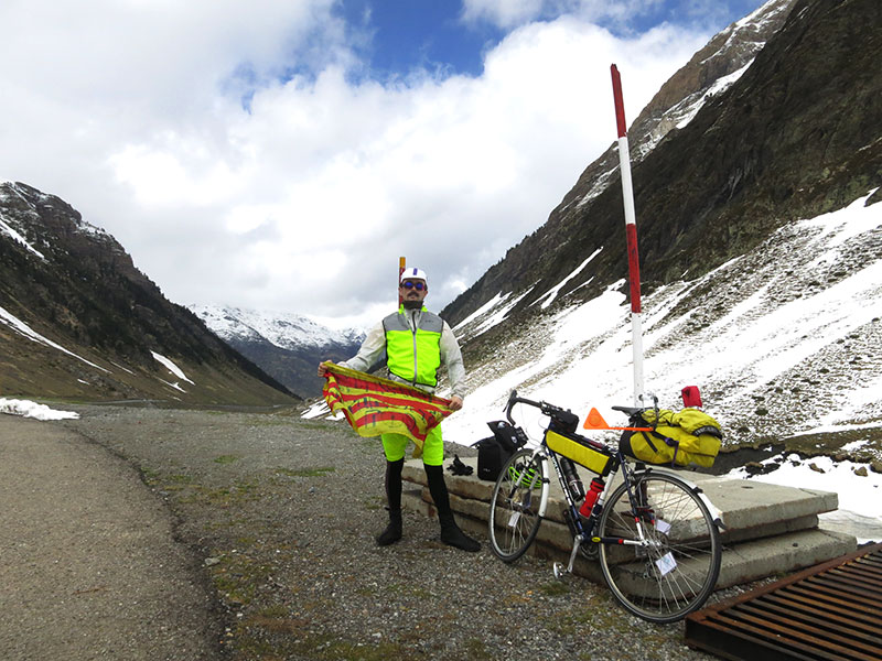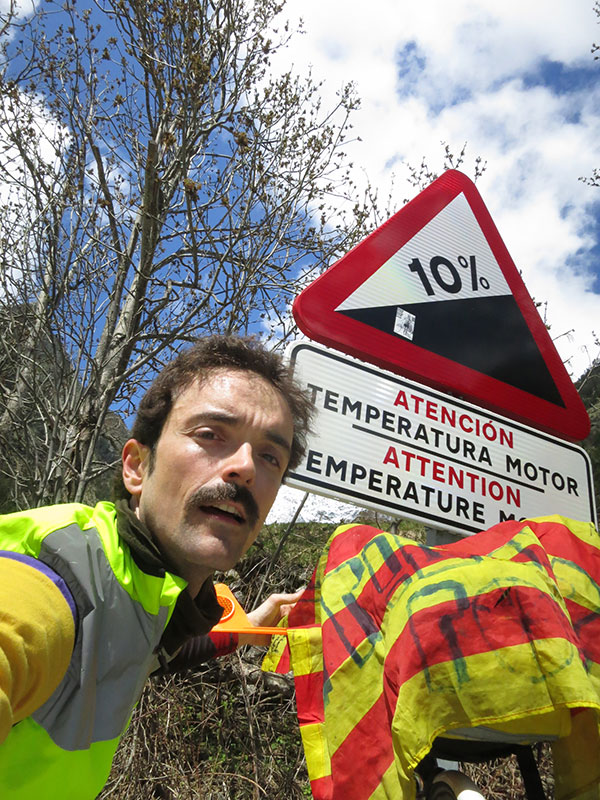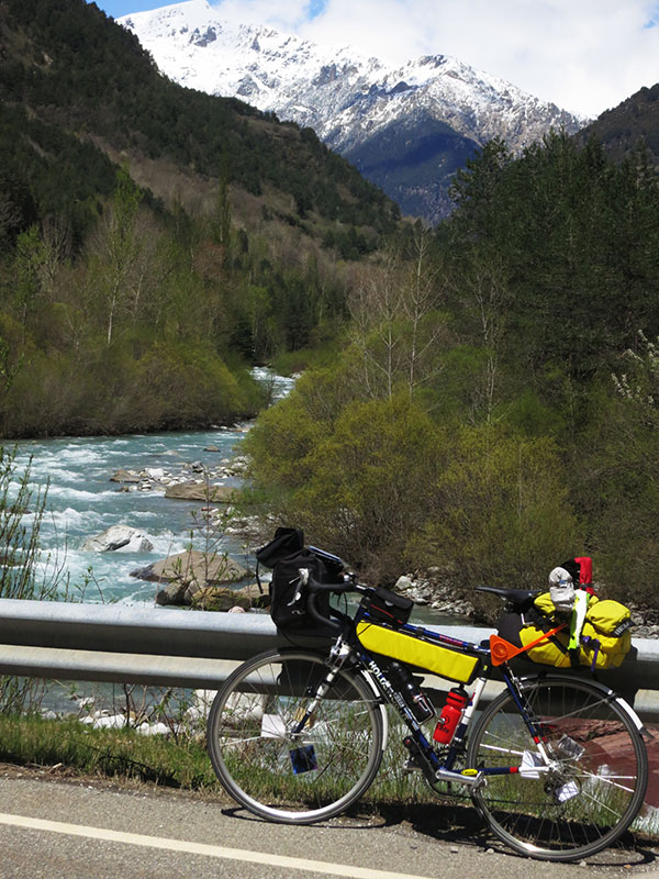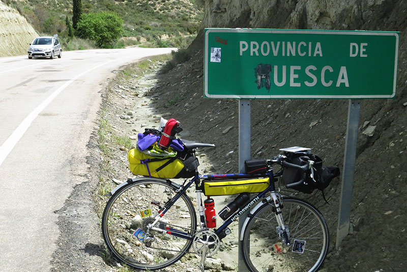 A la mañana siguiente un sol radiante iliumina la peña montanesa y las tres sorores, emblema del Sobrabe y de nuestra tierra, Aragón. El cansancio de la primera etapa, quizá la más dura de todo el viaje, hace mella en las rodillas que no tienes ganas de atravesar la cordillera para cruzar la muga. Es el día del trabajador, el día del ciclista trabajador que con sus piernas y pedales quiere llegar antes o después a su destino. Remontamos el Cinca, atravesamos foces, almorzamos y nos despedimos del país, antes de que una furgoneta nos cruce en Autostop el tunel. Los ciclistas no somos bien recibidos en su interior.