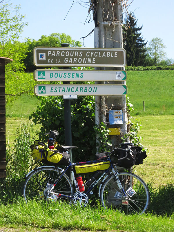 A la mañana siguiente comienza el pedaleo tranquilo pasando por pueblecitos franceses de postal y, al llegar a Montrejeau, el espíritu de Vicente Blanco me vuelve a obsequiar con otro regalo inesperado: la ruta cicliclable de La Garona. 100 km asfaltados y perfectamente señalizados me van a llevar hasta el comienzo de la infernal área metropolitana de Tolosa (Toulouse). Meandro, bosques, campos y más campos, colinas graneros y sobre todo calma.